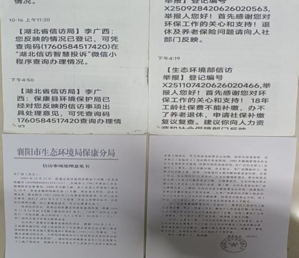 李某正是这种情况,事实上1996实现保险到2004年环保局应担负9年的法定义务。国务院互联网督查平台督办了,湖北省信访局也督办,襄阳市(071012345)催办了,保康县领导批示了,信访部门负责人曾明确关注并推动此事,社保部门也曾介入协调。保康县人社局回复让环保局交15年1.5万,每年按(1000交);这样退休能领200元退休金;但关键阻力始终存在于原用人单位——环保部门。其回应逻辑高度一致:“没有政策依据”“已经签订买断协议”。