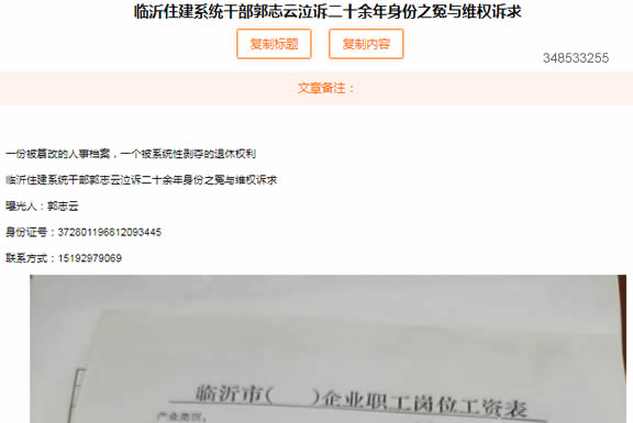 临沂住建系统干部郭志云泣诉二十余年身份之冤与维权诉求