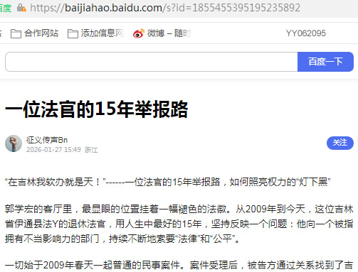 “在吉林我软办就是天!”------一位法官的15年举报路,如何照亮权力的“灯下黑”